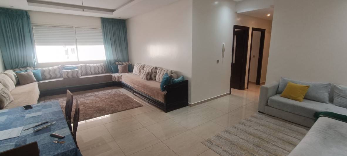Location vacances: Appartement 90 . Situé à AGADIR-quartier Hassan II. Composé de : 1 pièce(s) de vie, 2 Ch, cuisine, 1 SDB et 1 WC. Prix 1100 / Nuit.